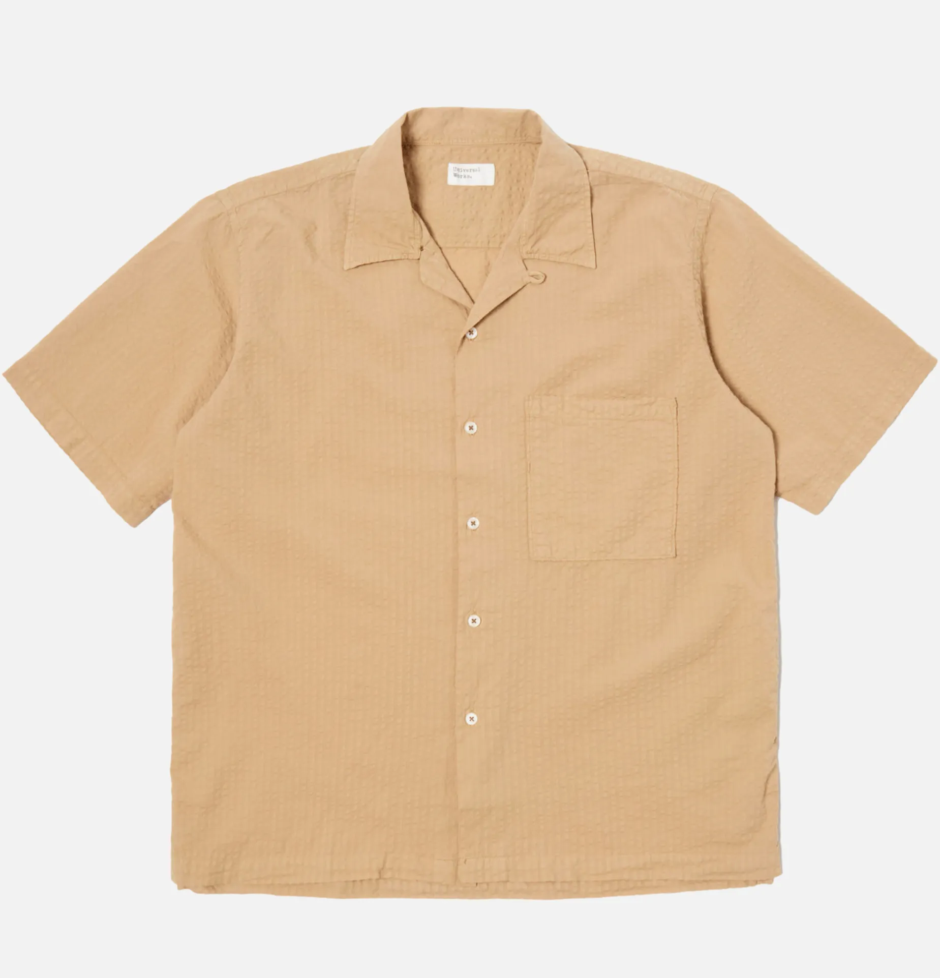Universal Works Camp Shirt II In Summer Oak Onda Coton Beige