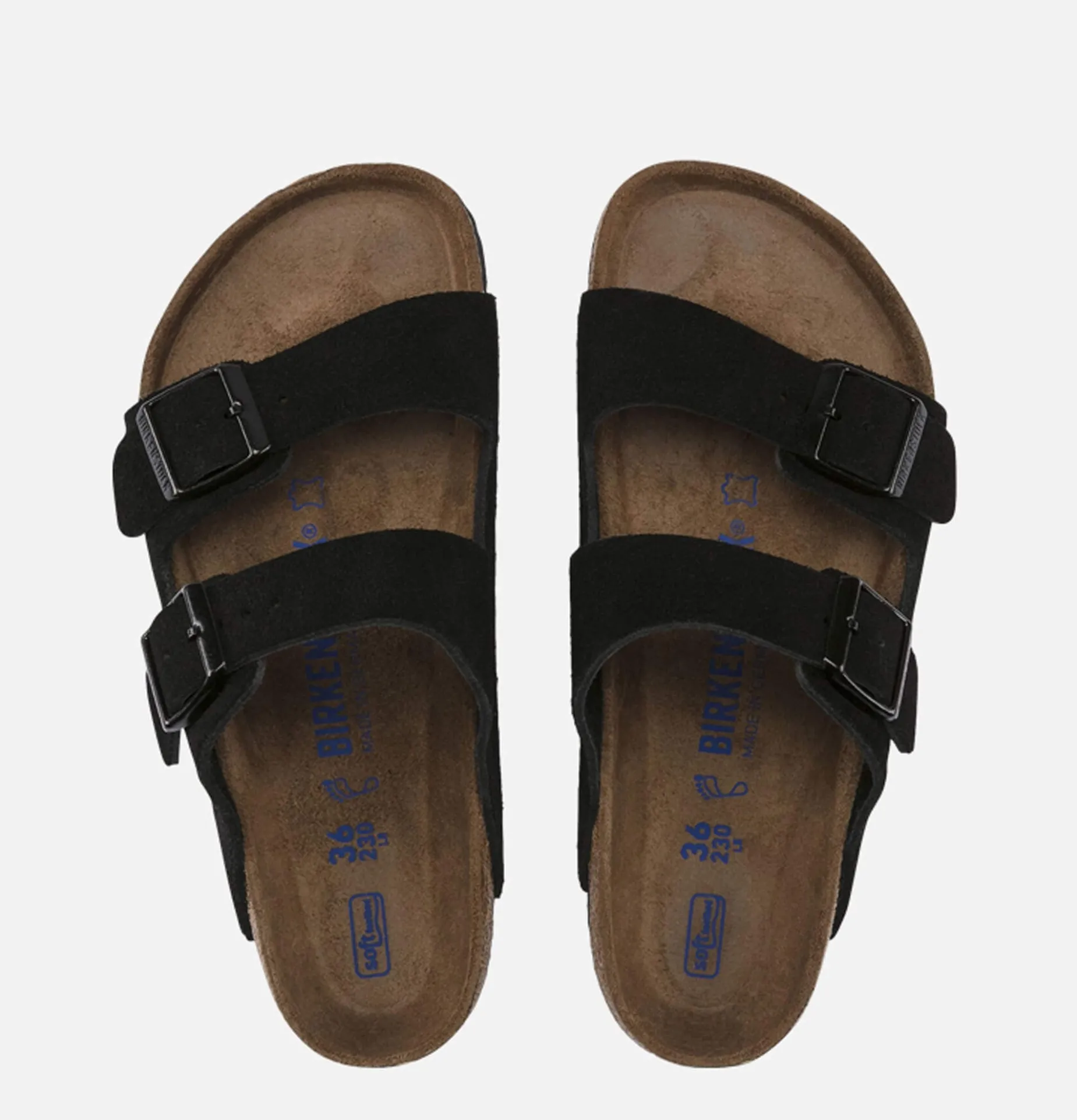 Sandales Femme Birkenstock Arizona Soft Footbed BlackSuede. Double brides réglables. Semelle anatomique amortissante.